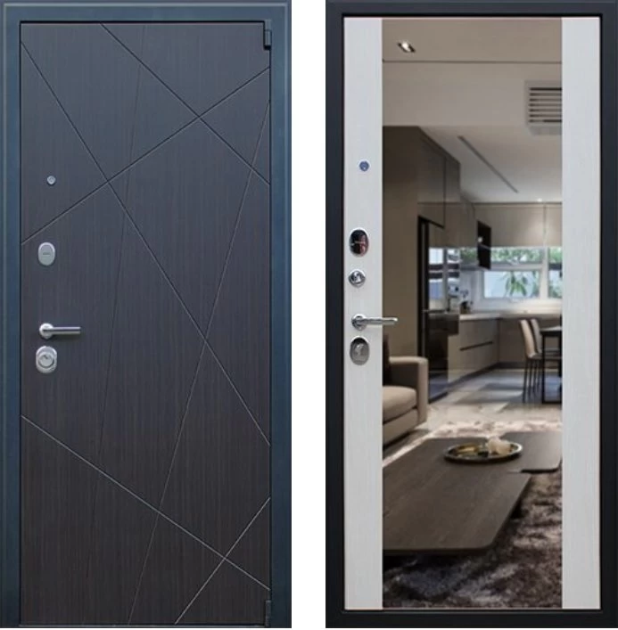 Надежная входная Дверь Вектор с зеркалом премиум класса по цене 49 280 руб. Большая толщина стали защитит от проникновения в ваш дом, квартиру или коттедж. Используется очень качественная фурнитура: замки, цилиндры, ручки, защелки. Покрытие и отделка двери изготовлено под внимательным контролем производителя. Дверь имеет долгий срок службы и гарантию.