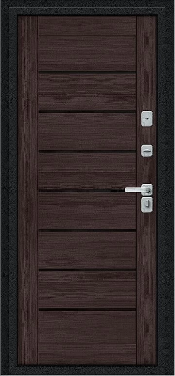 Дверь Браво Thermo Техно Д2/BChrome Букле черное/Wenge Melinga - недорогая эконом класса по цене 4 630 руб., отлично подходит для временной установки в квартиру под сдачу, строительство, ремонт. Не смотря стоимость, модель хорошего качества.